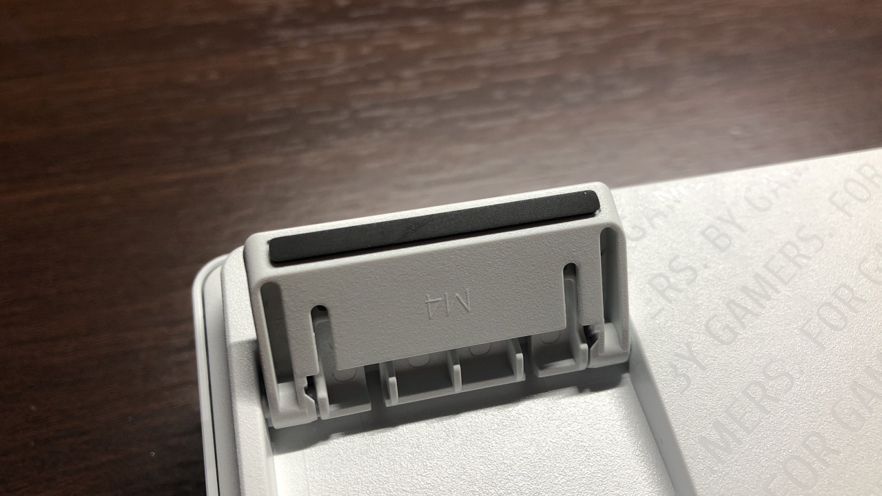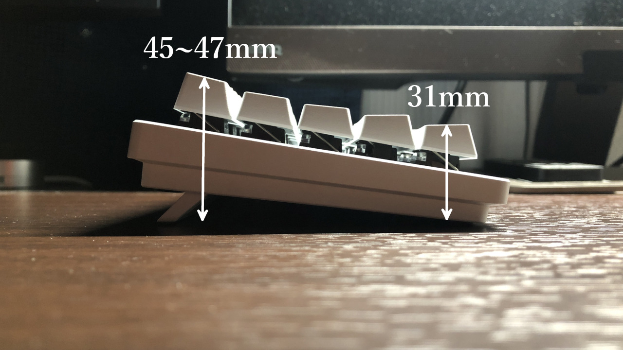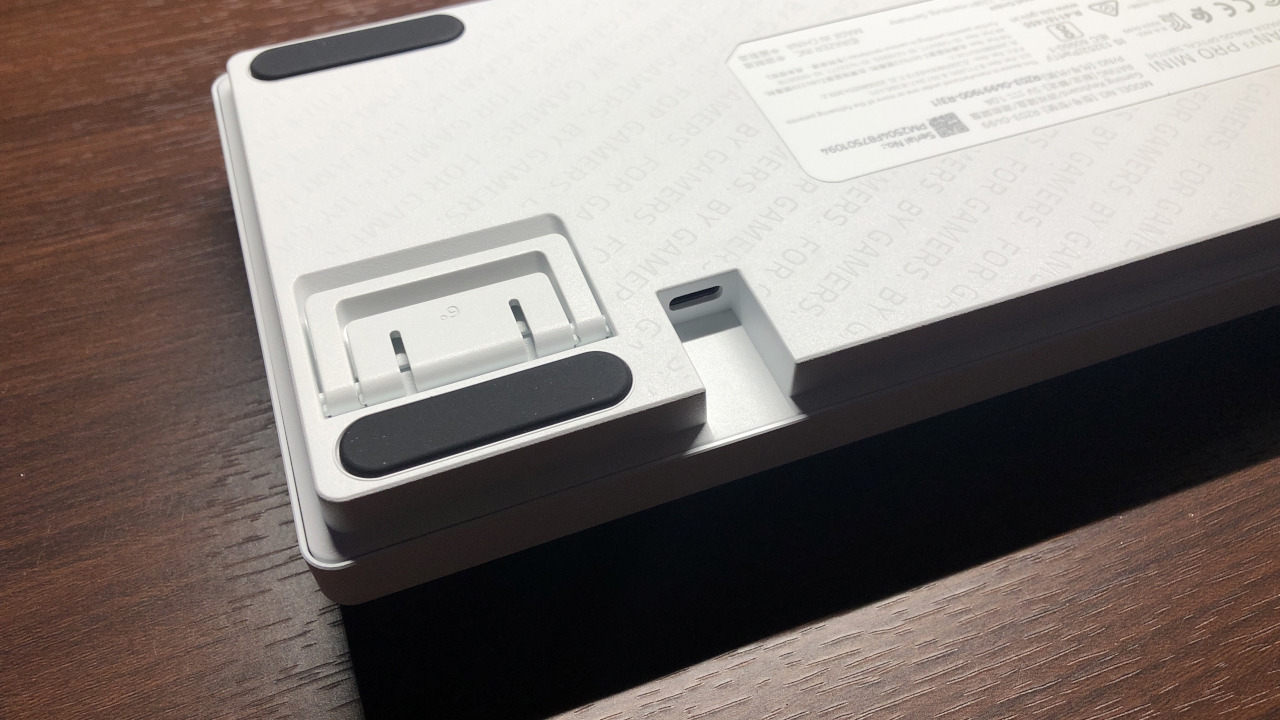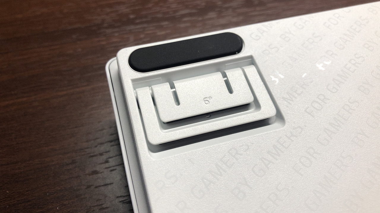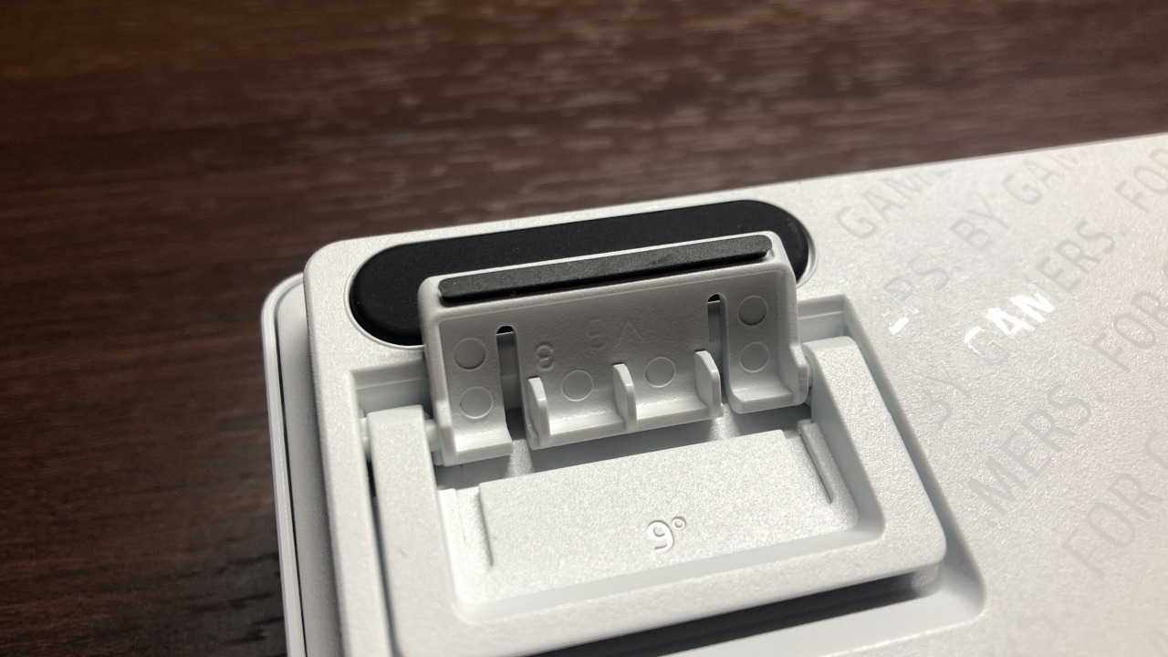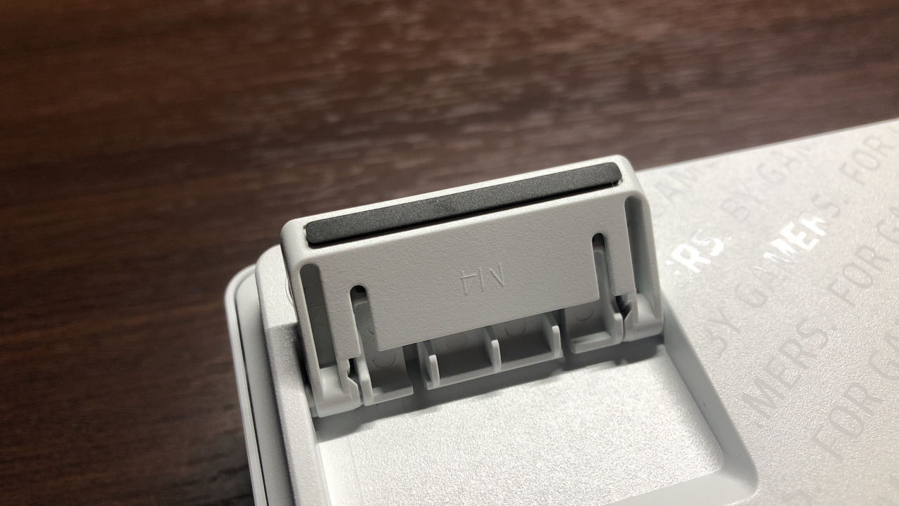 大型サイズのキーボードと比べるとグリップ性は劣りますが、60%サイズとしては十分なグリップ性を持ちます。スタンドを倒した状態、立てた状態のどちらでもしっかりあり、ちょっと押されただけで動いてしまうということは無さそうです。