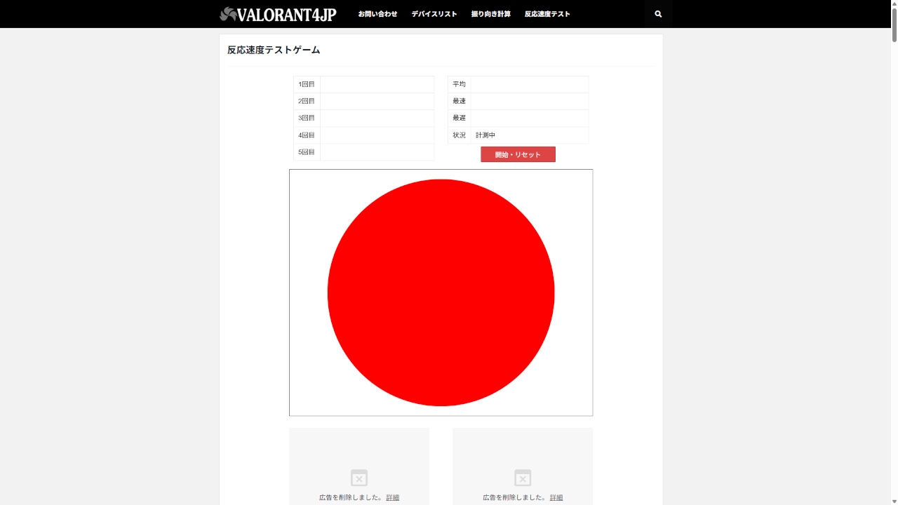 クリック反応速度を計っていきます。測定には「反応速度テストゲーム」というゲームを使わせていただいています。※反応速度を測るゲームで簡単に測っているだけで、純粋なキーボードの応答速度を計っているわけではないので参考程度にお考え下さい。