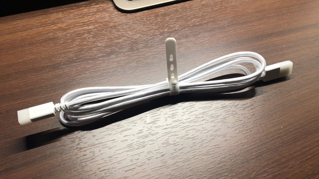 ケーブルは布巻きの着脱可能なUSB Type-Cケーブルとなっています。長さは1.9mほどと十分な長さ。