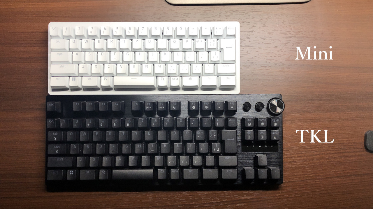 - テンキーレス(TKL、80%):フルサイズからテンキーを省略したサイズ