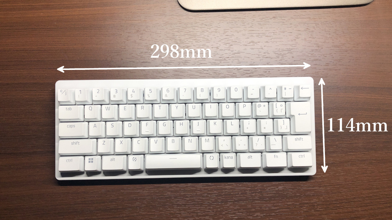 - 60%:フルサイズからファンクションキー、DELETEキー群、テンキー、矢印キーを省略したサイズ